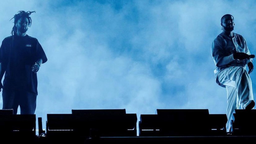 ABOVE: J. Cole and Drake perform at the 2023 Dreamville Festival