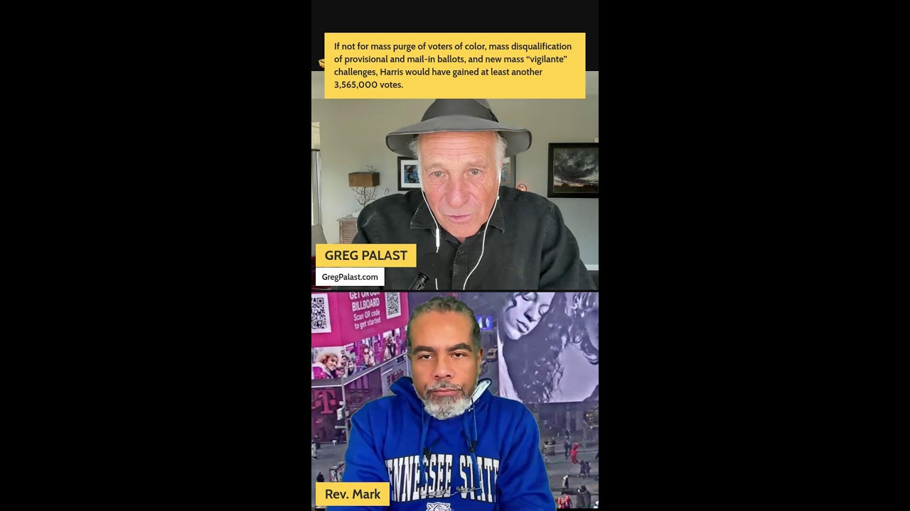 And, if not for the mass purge of voters of color, if not for the mass disqualification of provisional and mail-in ballots, if not for the new mass “vigilante” challenges in swing states, Harris would have gained at least another 3,565,000 votes, topping Trump’s official popular vote tally by 1.2 million.