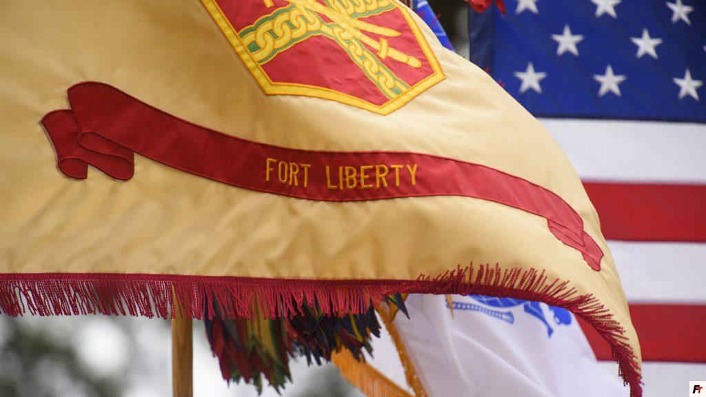 ABOVE: FORT BRAGG, NORTH CAROLINA – JUNE 2: The U.S. Army garrison commands organizational Fort Liberty flag waves after a redesignation ceremony officially renaming the military installation on June 2, 2023 in Fayetteville, North Carolina. Fort Liberty, formerly known as Fort Bragg, is the largest military installation by population in the United States. (Photo by Melissa Sue Gerrits/Getty Images)
