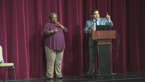 “The goal is not to set up students to fail; the goal is to support school systems,” Delgado said amid groans from the audience. “We’re trying to raise the bar and expectations for students.”