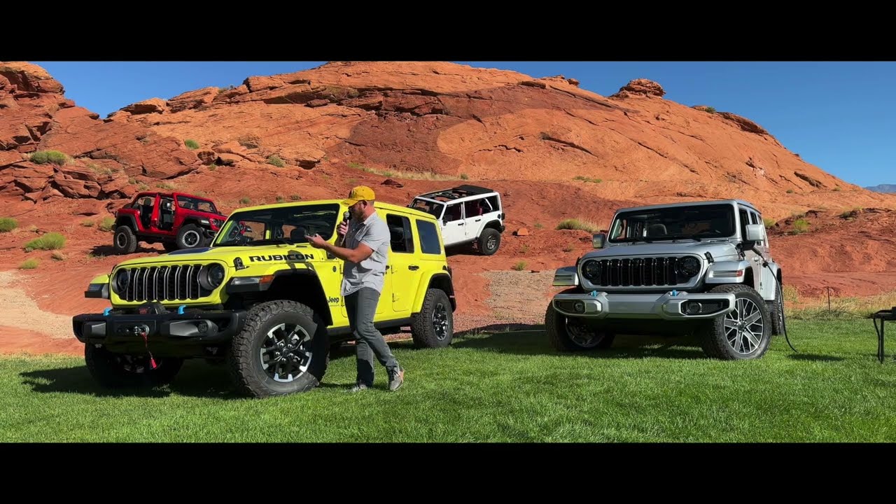 Jeremy Glover, Design Manager discussed special design ques to look for in the exterior and interior design, and much more with invited journalists. Seeing is believing. Jeep held the first presentation and drive of the new 2024 Wrangler in St. George, UT. The off-road drive was in The Rock Bowl at Sand Hollow Resort. Unique to AutoNetwork.com.