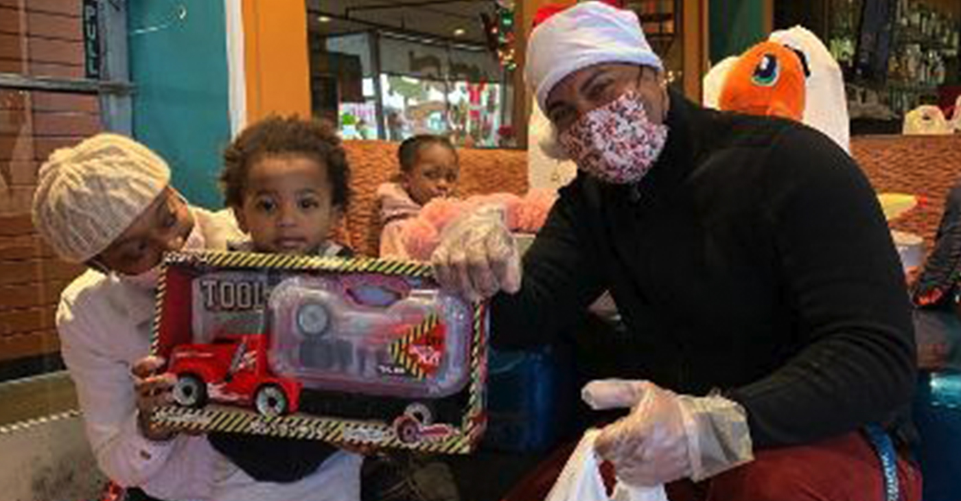 More than 30 community volunteers helped serve chicken and waffles and handed out toys to the kids while they enjoyed soulful Christmas music.