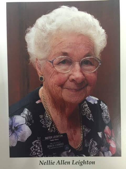 Nellie Allen Leighton, resident of Oakland from 1942- 2000, passed away peacefully on March 10, 2019, a mere two weeks after 300 family and friends flocked to Salt Lake City to celebrate her 100th birthday party. That impressive attendance spoke volumes for how many lives Nellie touched throughout the years.