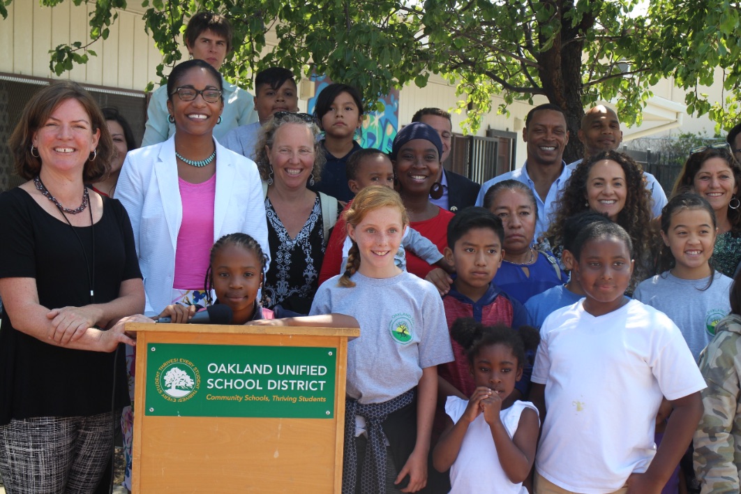 Johnson-Trammell’s last stop of the day was for a brief press conference at the brand new dual-immersion language middle school, Oakland SOL, which was created through a three-and-a-half year partnership between the district and students, parents and community members, including Oakland Community Organizations (OCO).