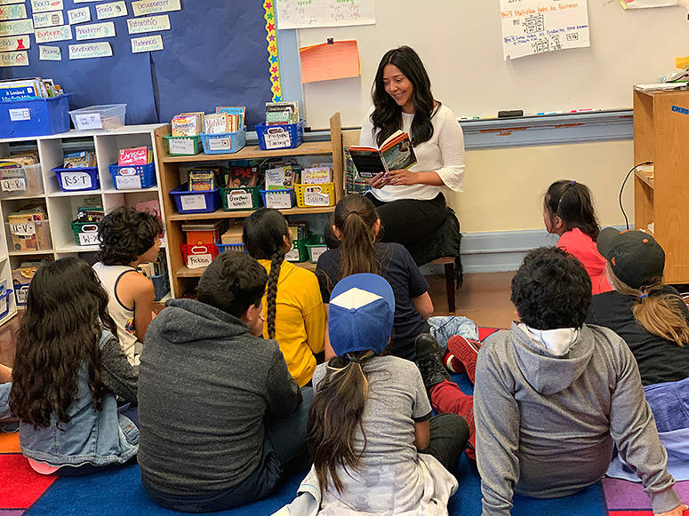 The residents spend seven hours a day teaching in classrooms, and often are offered full-time jobs at the schools in which they teach. One resident-turned-teacher is Rosalinda Hernandez Baquier MAT ’15 of Buena Vista Horace Mann (BVHM) school in the Mission District. She’s been teaching there for five years after spending one year as a resident.