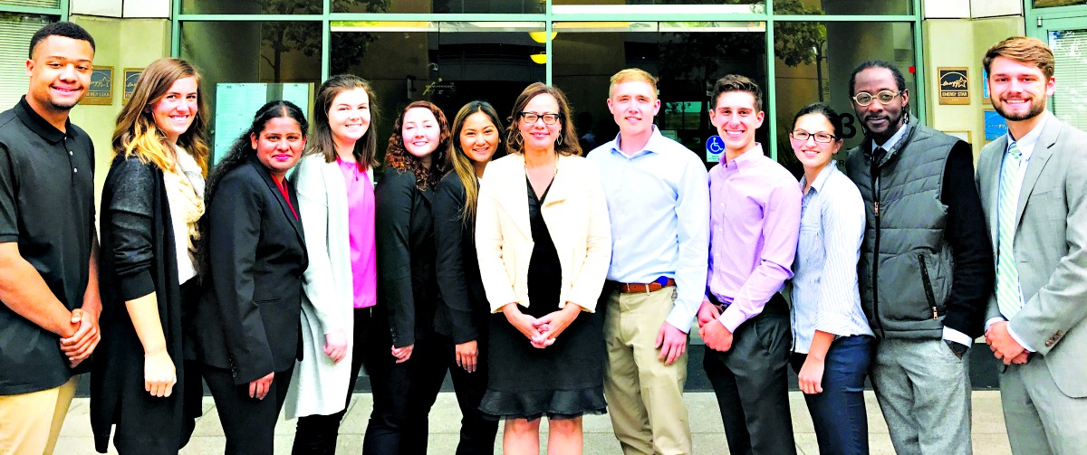 Port of Oakland 2017 summer college interns (left-right): Mario Goins, Molly Curely-O’Brien, Avinash Kaur, Toni Gadar, Emma Carray, Keani Turangan, Port of Oakland Social Responsibility Director Amy Tharpe, Parker Rodrigues, Anthony Rimac, Eleni Comstock, Gumia Kabunga, Jack Wellman.