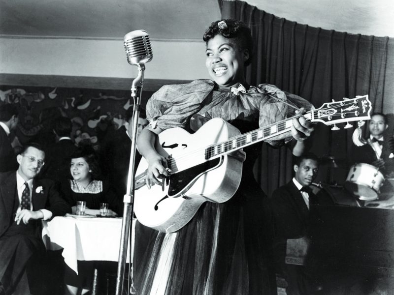Growing up in Arkansas, Tharpe’s home was filled with music: religious singers and traditional evangelists. The born singer began her own career when, at age 4, she picked up her first guitar. By age 6 she was on the road with her mother. The two traveled with an evangelist troupe, performing spiritual music throughout the South.