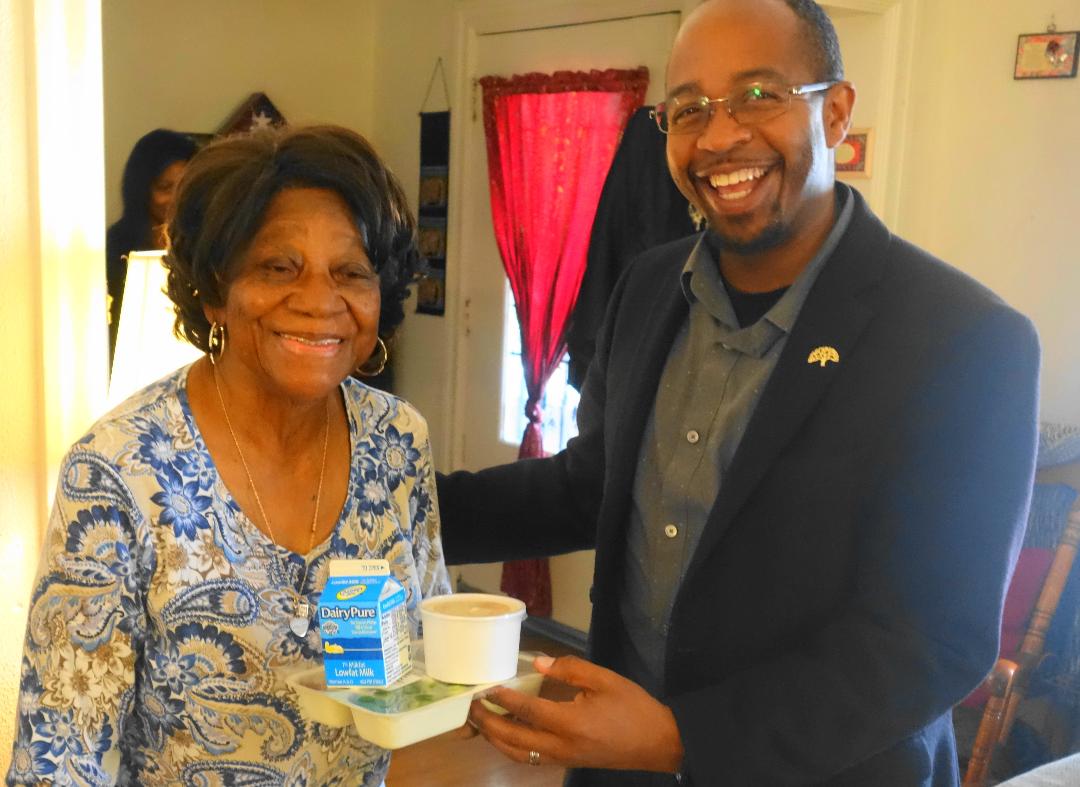 District 6 Councilmember Loren Taylor celebrated March for Meals 2019 by delivering a meal to Mrs. Liz Gilmore, an 89-year-old meal recipient who is a longtime resident of Oakland and civil rights activist.