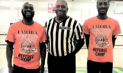 Will Smith, founder of Tailor Made Officials Basketball Association, Inc. (TMOBA) with officiates Frank Knight and Kenny Thomas at Jamtown. Will Smith, founder of Tailor Made...