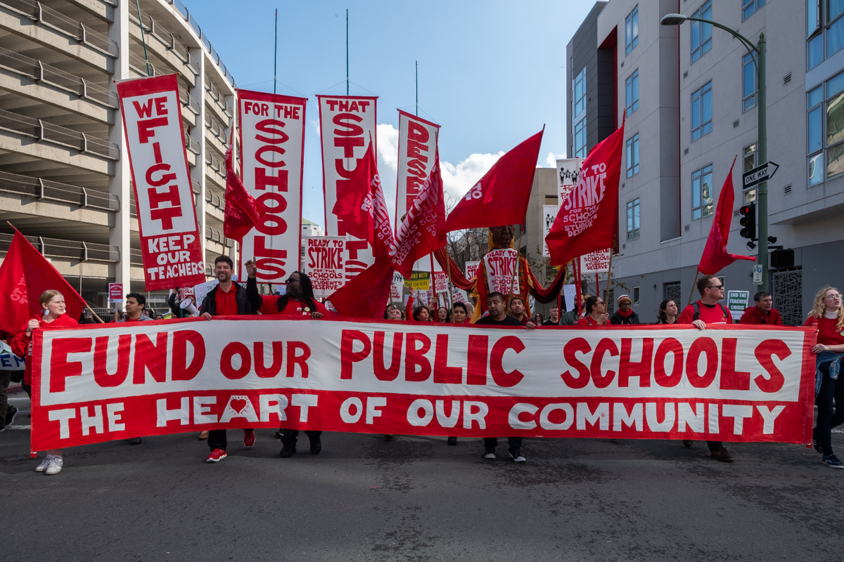 On Saturday, Jan. 12, several thousand East Bay teachers and their supporters gathered at the Lake Merritt Amphitheater and marched to Oakland City Hall for a “Rally to Fund Public Edu­cation Now,” organized by the Oakland Education As­sociation (OEA).