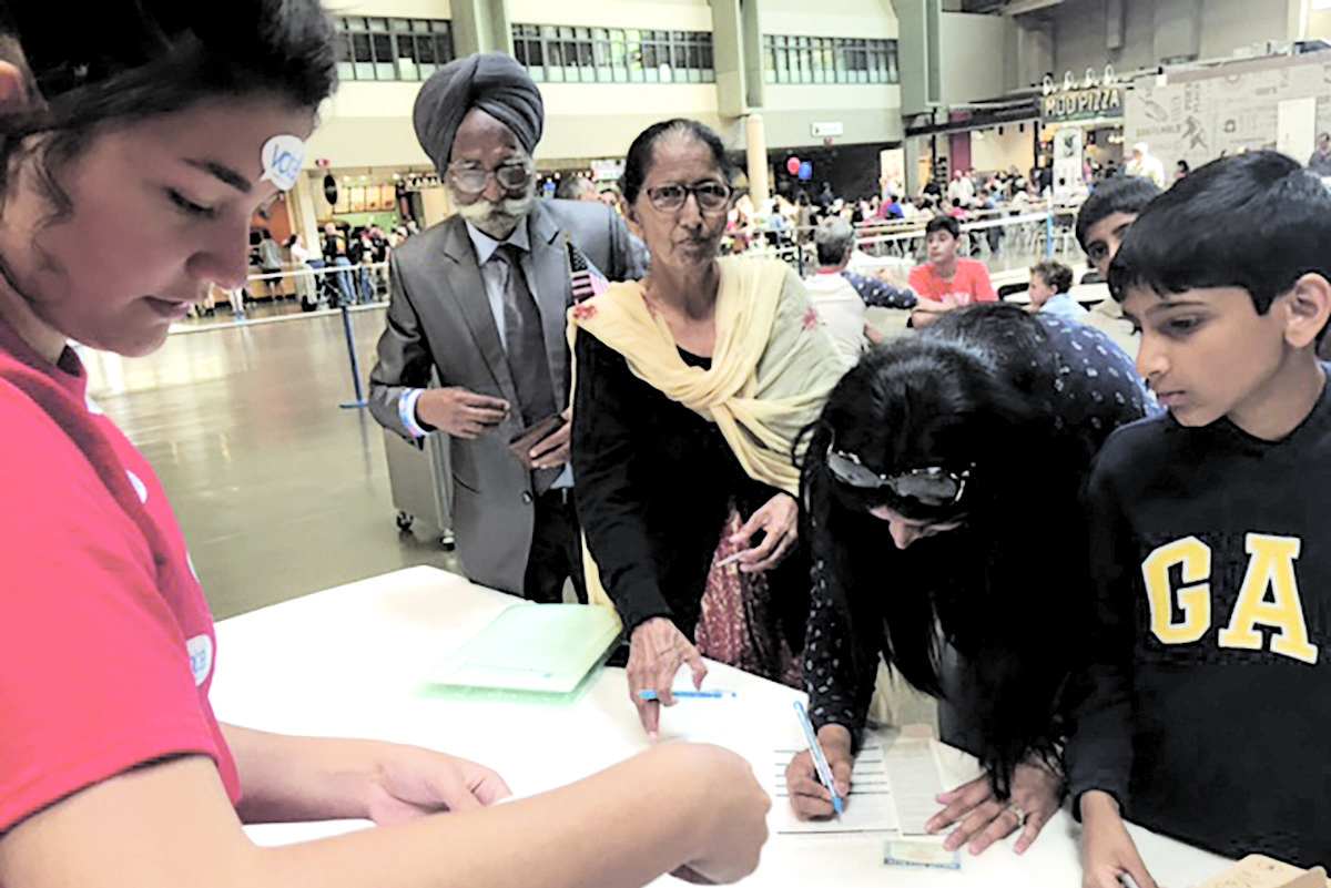 Sophia Quintana of Berkeley and active member of the MLK Freedom Center registers voters at July 4 naturalization ceremony in Seattle, WA.